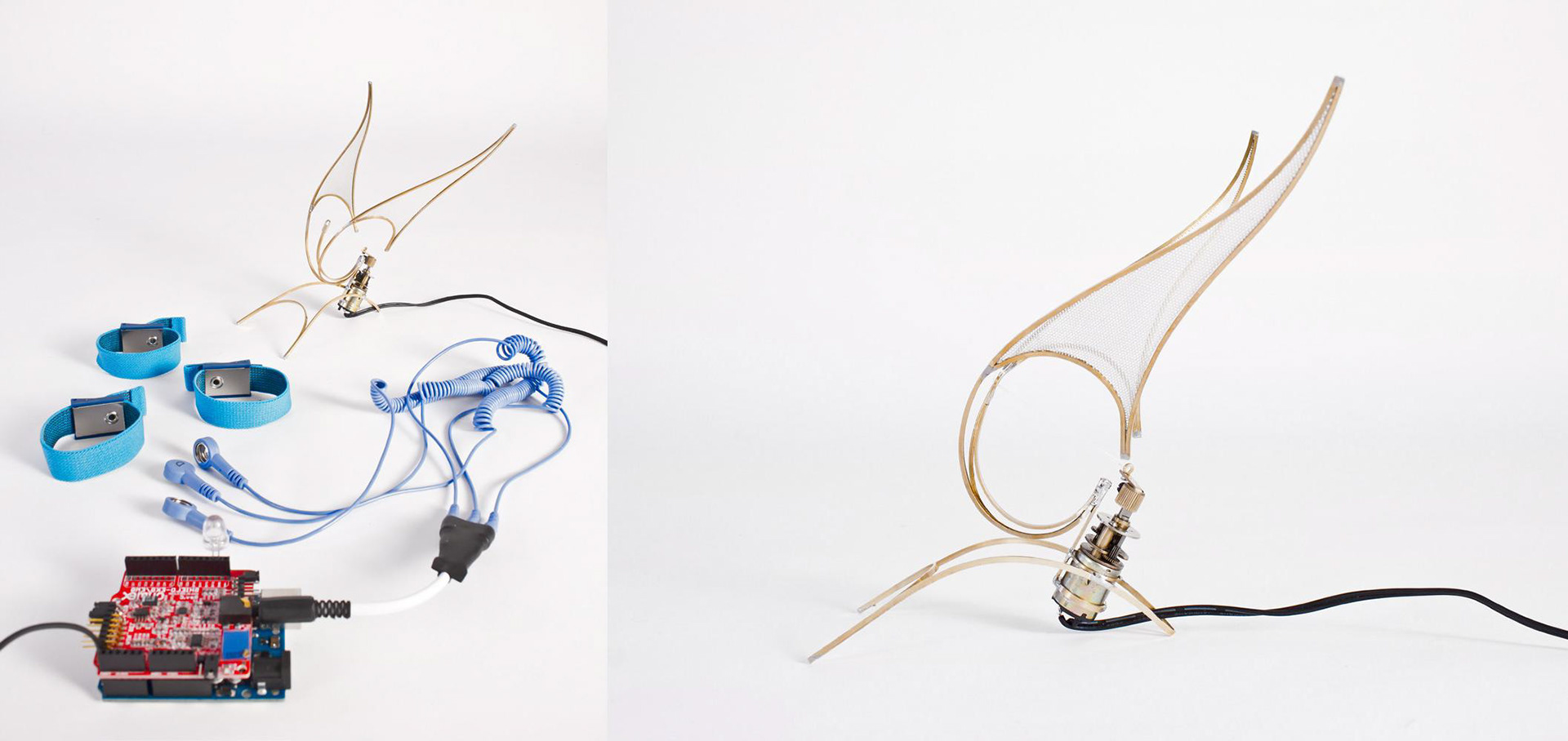 In this case, we explore the relationship between the human heart and mechanical form. With the help of an electrocardiogram (ECG), electrodes are placed on the body to capture the heart’s electrical activity. These signals serve as the input that animates the artifact, amplifying the cardiac signals and translating them into organic movements of the structure. This allows the user to visualize and perceive their own heartbeat in a new and tangible way.